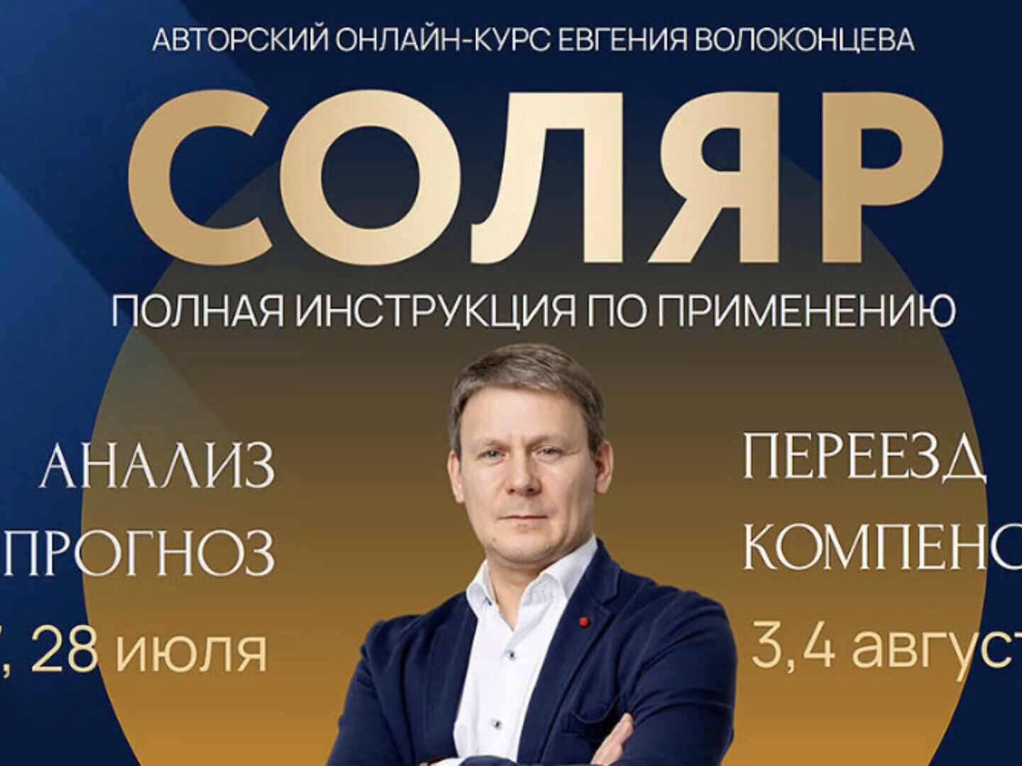 Тренинг Евгения Волоконцева «Соляр - время менять судьбу » совершенно уникален. Такого тренинга еще никто не проводил, даже он сам. Уникальность тренинга в том, что Евгений Валентинович, во-первых, будет проводить его в свой день рождения, это значит через него будет проходить усиленный поток его