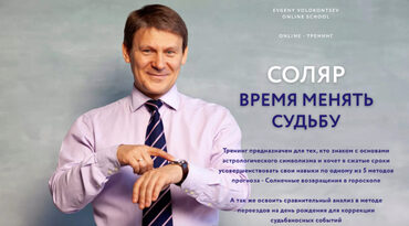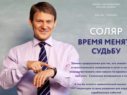 Полное погружение в один из самых интересных и важных методов предсказания под руководством опытного практикующего выездные Соляры астролога - Евгения Волоконцева. Соляр — это возвращение Солнца в то положение, в котором оно было в момент вашего рождения. Это событие происходит каждый год и