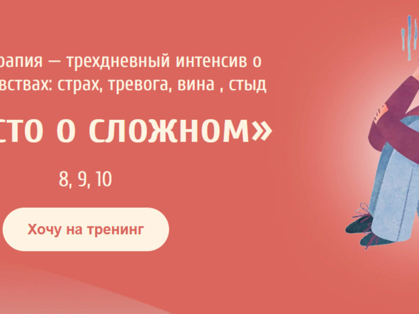 Курс Тренинг-терапия - трехдневный интенсив о сложных чувствах «Просто о сложном», автор Евгения Ганина, Наталия Серебренникова. Тренинг для тех, кто: