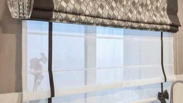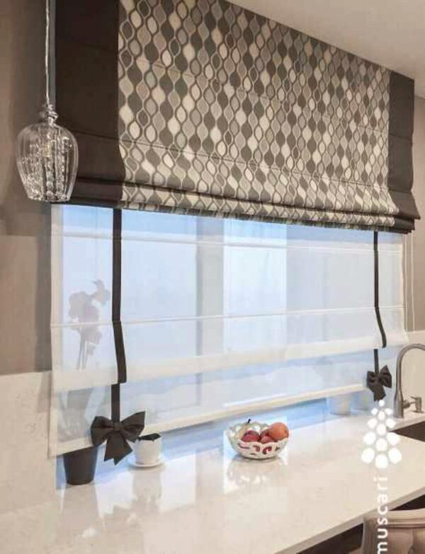 — Сошьём римскую штору с кантами по периметру, между кантом и основой вставим декоративный элемент.
