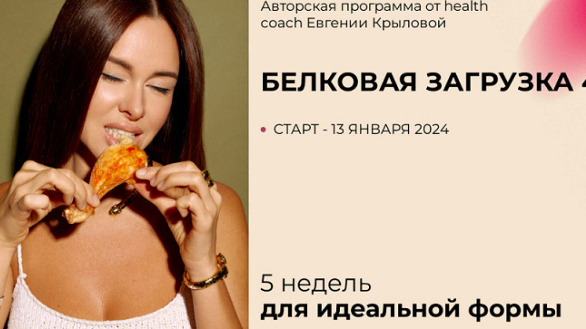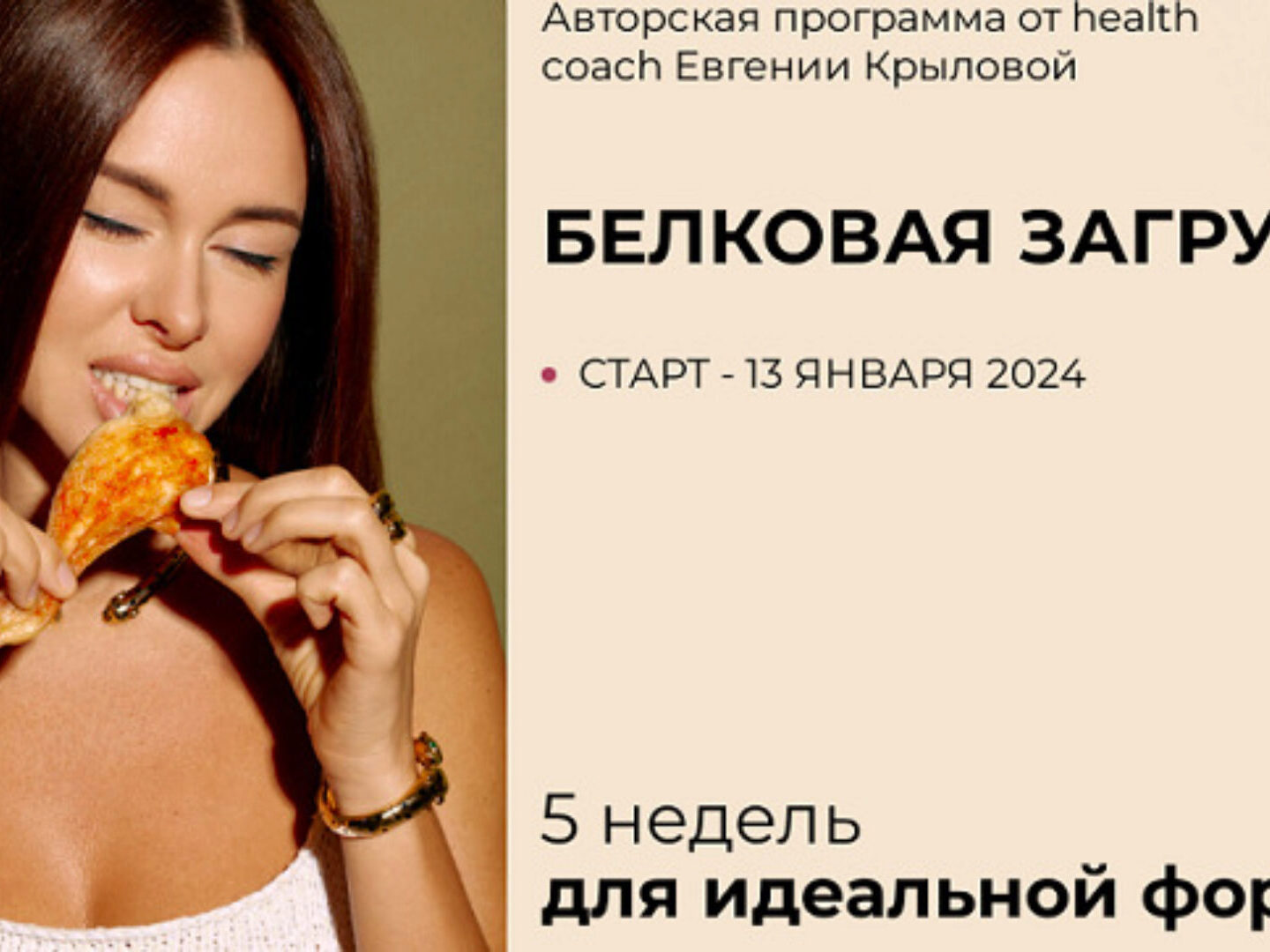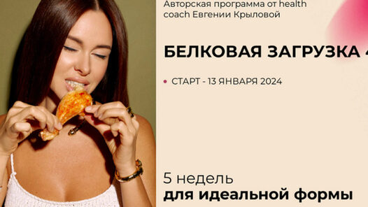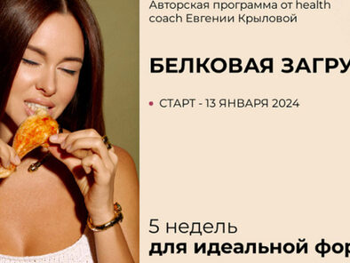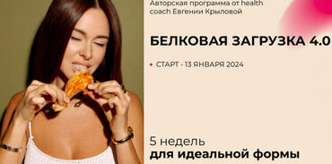 Авторская программа от health coach Евгении Крыловой 5 недель для идеальной формы Чтобы худеть, нужно есть. На Белковой загрузке никто не голодает. В программе курса — сбалансированное потребление белка, моя личная поддержка в чате, научный подход к похудению и умеренные тренировки КАК ЭТА
