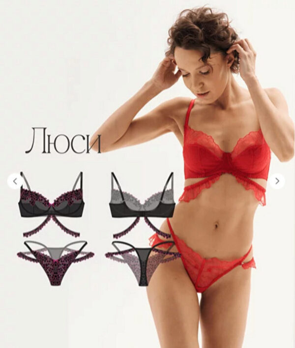 «Симона» — комплект нижнего белья, который состоит из бюстгальтера на низких каркасах с высокой чашкой и трусиков-бразильяно с разделителем. Бюстгальтер «Симона» — бюстгальтер с глубоким вырезом, без подкладки, на бретелях 1,5 см. Чашка выполнена из неэластичных материалов (бюстовая сетка),