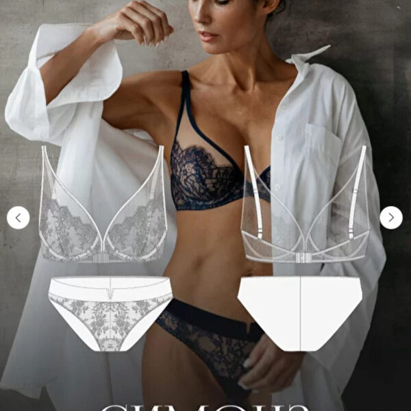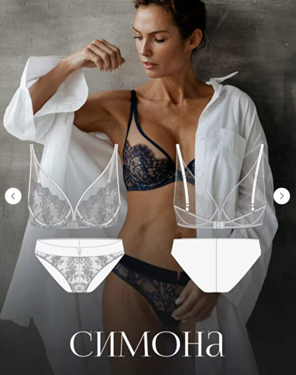Бюстгальтер «Симона» — бюстгальтер с глубоким вырезом, без подкладки, на бретелях 1,5 см. Чашка выполнена из неэластичных материалов (бюстовая сетка), обработана окантовочной бейкой.