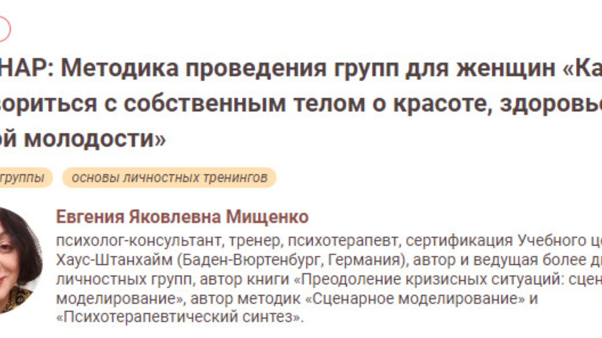 Купить другие курсы и тренинги от Евгении Мищенко