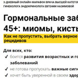Да, Вы можете получить получить бесплатно фрагмент курса «Гормональные заболевания 45+: миомы, кисты, опухоли. Как выбрать верное лечение», просто напишите на почту или в телеграм