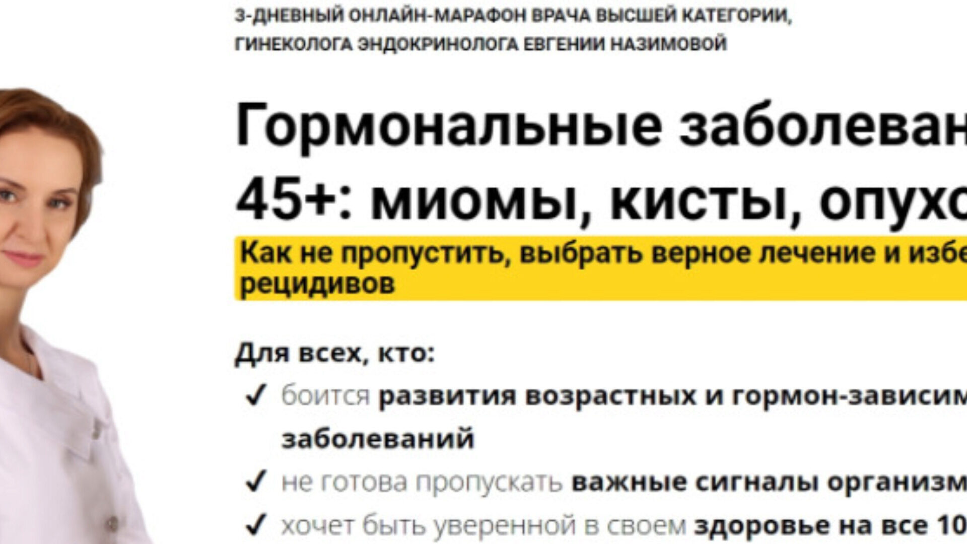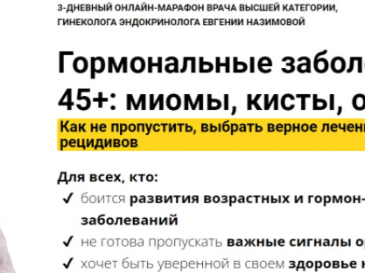Курс Стоп Климакс - Гормональные заболевания 45+: миомы, кисты, опухоли. Как выбрать верное лечение, автор Евгения Назимова. Программа марафона