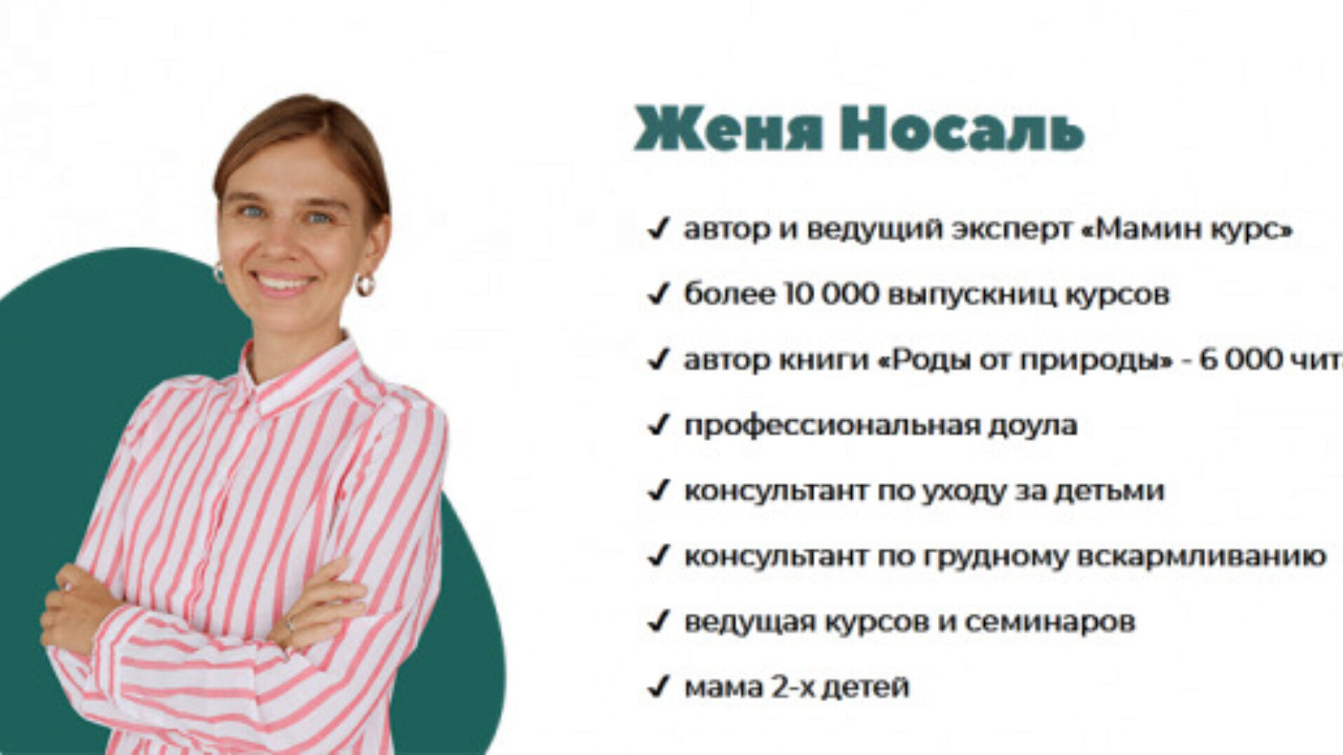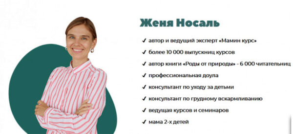 Для того, чтобы у вас было счастливое материнство, Евгения Носаль подготовила авторский онлайн-курс, где рассказывает, что происходит с психологическим и физическим здоровьем молодой мамы, как наладить грудное вскармливание, настроить ментальную связь с младенцем и позаботиться о себе. Навыки, полученные на курсе, станут для вас мощным фундаментом легкого и беззаботного материнства без волнений, смятений и разочарований.