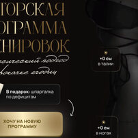 Тренировочная программа на месяц (12 тренировок: 8 на ягодицы и 4 на спину/руки/плечи/пресс) 1 комплекс на активацию ягодиц Бонусы Шпаргалка по дефицитам