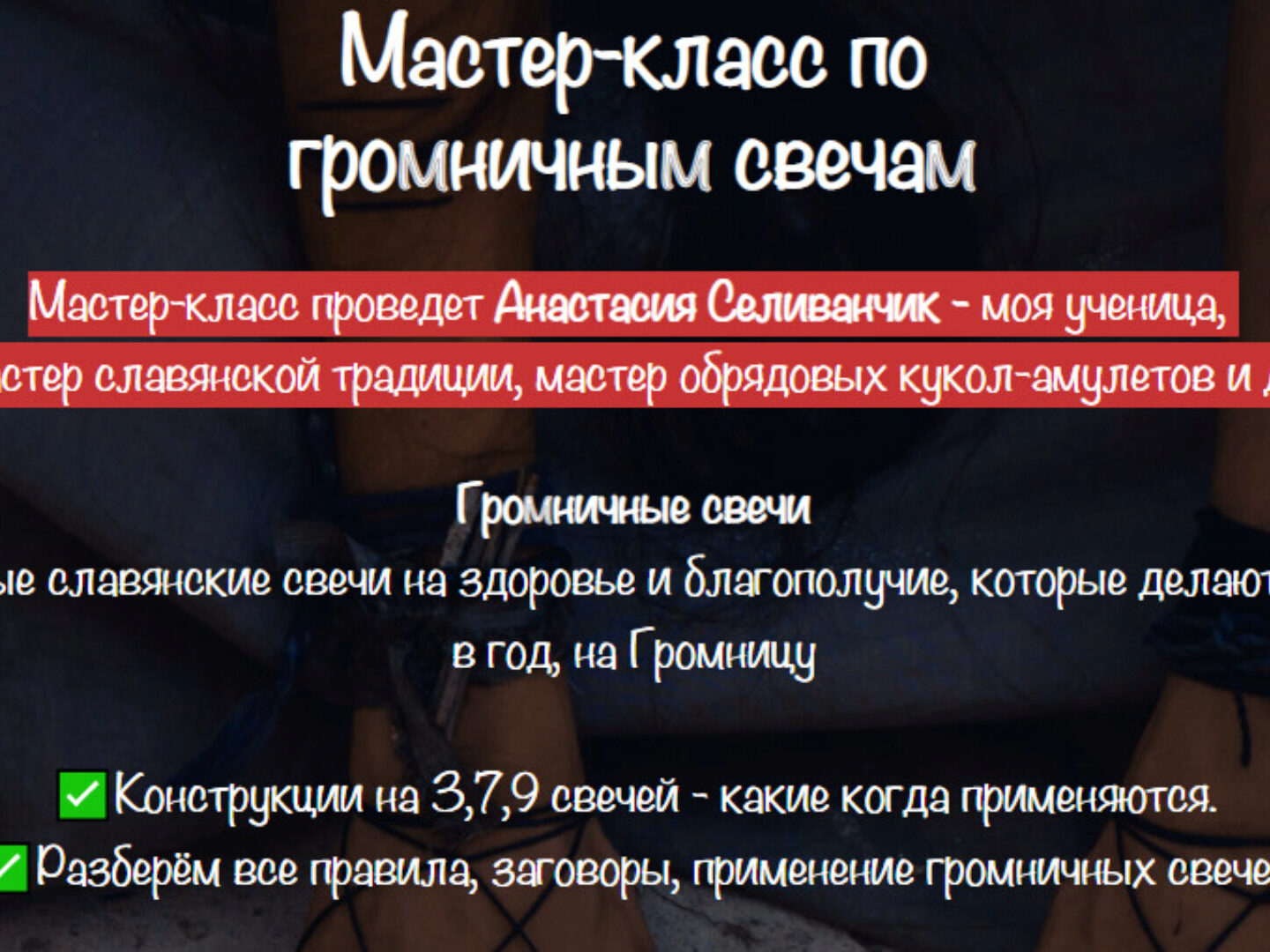 Дорогие друзья! Приглашаю вас на свой мастер-класс «Практическая магия отливок воском, ладаном, свинцом, оловом» который состоится 2 февраля в 19.00 МСК. Принять участие в МК может каждый желающий, вне зависимости от текущего уровня подготовки. Программа : Техника безопасности при отливках Алгоритм