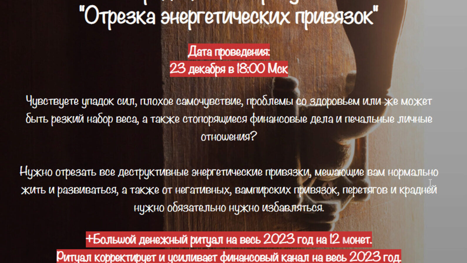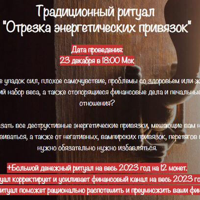 Евгения Першина «Традиционный ритуал Отрезка энергетических привязок+Большой денежный ритуал на весь 2023 год на 12 монет» — belaya_vedma слив скачать
