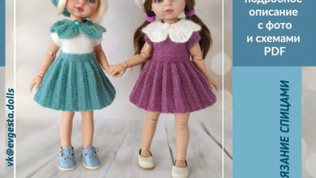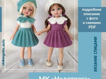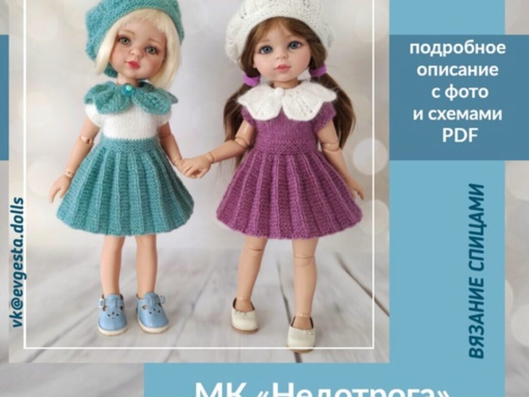 Курс evgesta.dolls - Недотрога, автор Евгения Старикова. Описание (в формате PDF) вязания спицами комплекта одежды для кукол Паола Рейна 32-34 см и им подобных.