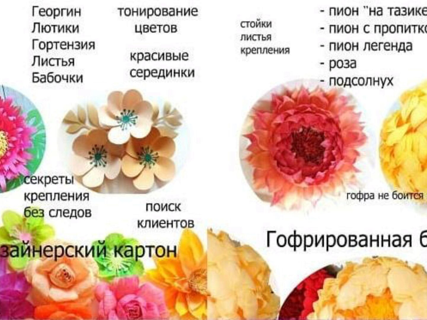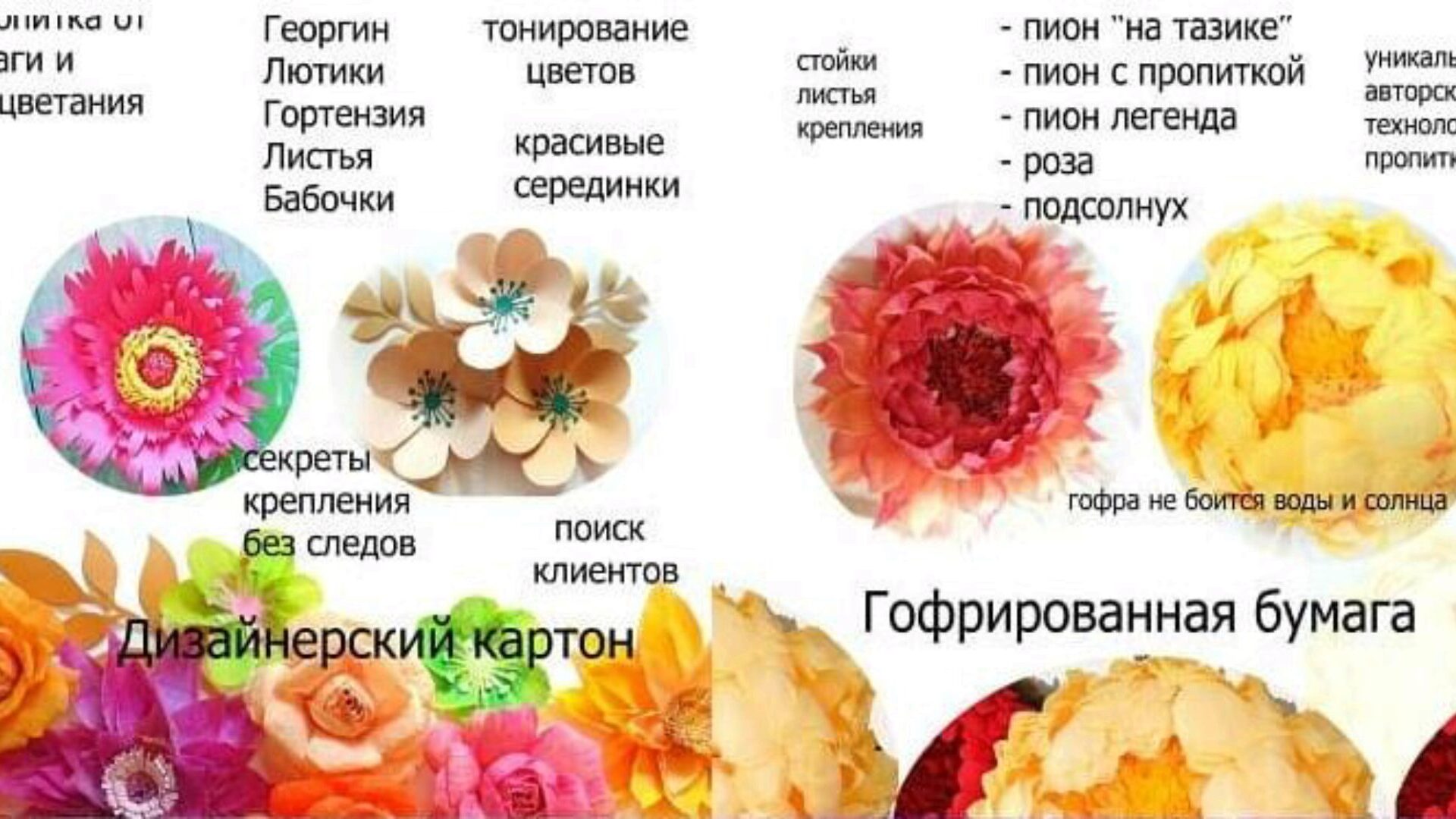 В курсе даю информацию по цветам из гофробумаги, изолона, фоамирана и картона.