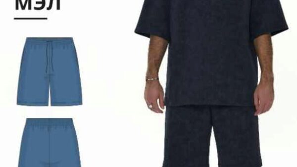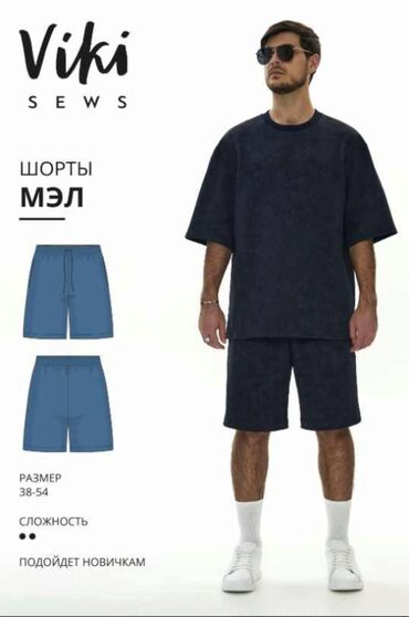 Выкройка мужских шорт умеренного объема, прямого силуэта. В боковых швах шорт расположены карманы. Пояс шорт цельнокроеный на резинке с обметанными петлями, через которые вставлен декоративный шнур. Длина шорт до колена. Для пошива шорт подойдут трикотажные полотна, которые обладают следующими