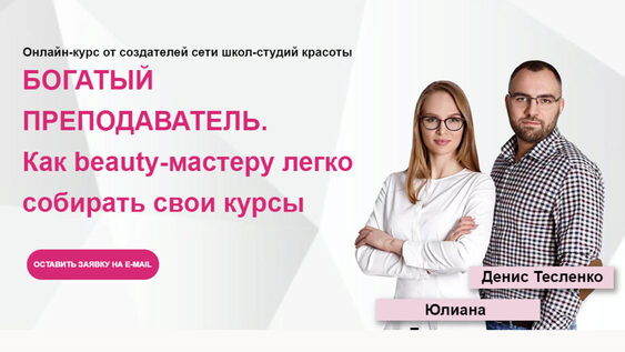 Юлиана Бондаренко, Денис Тесленко «Курс Богатый Преподаватель. Богатый beauty-тренер.» слив скачать