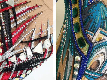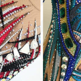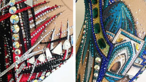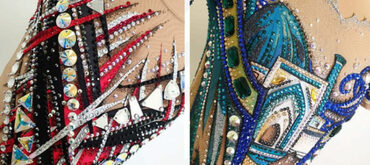 В данный курс входят: создание эскиза, отрисовка и перенос эскиза на выкройке, тонировка ткани, роспись купальника, работа с контурами и глиттером, точечная графика, работа с бахромой и перьями, работа со стразами горячей и холодной фиксации, зеркалами, драпировка, объёмные аппликации и т.д.