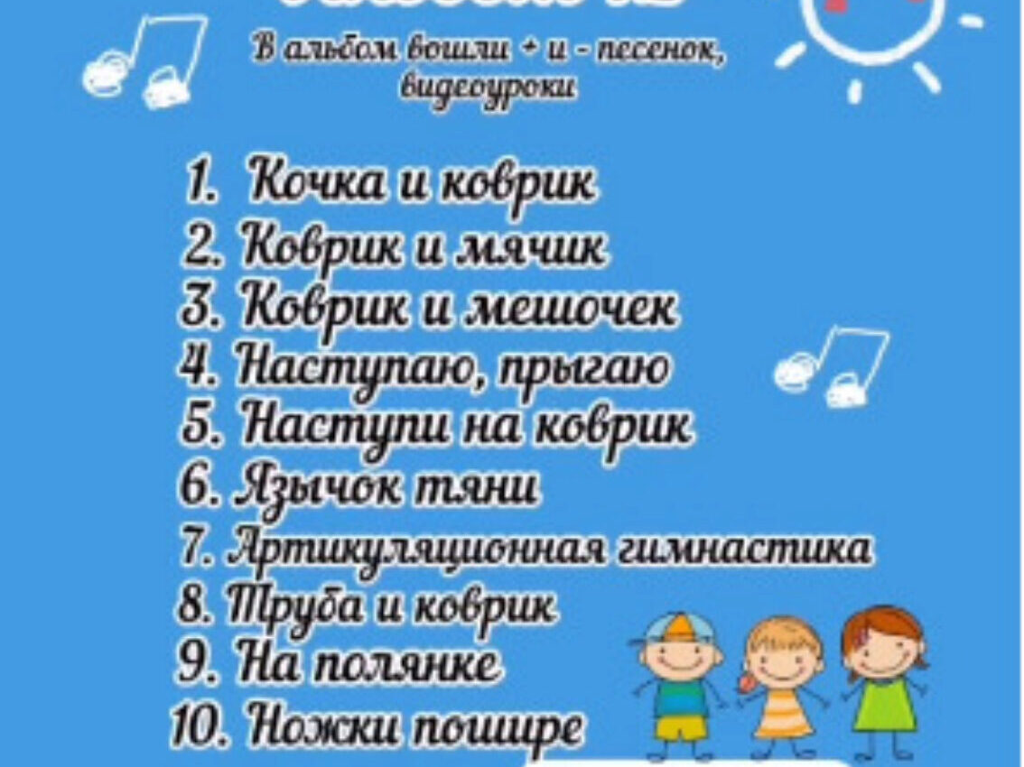 Альбом №4. В альбоме 12 песенок, плюсы и минусы входят в альбом! Альбом развивает: ️соматогнозис (схема тела); ️чувство ритма; ️саморегуляцию; ️переключение; ️удержание моторной программы; ️слуховое восприятие; ️межполушарные связи; ️улучшает психо-эмоциональное состояние .. Для кого: для деток с