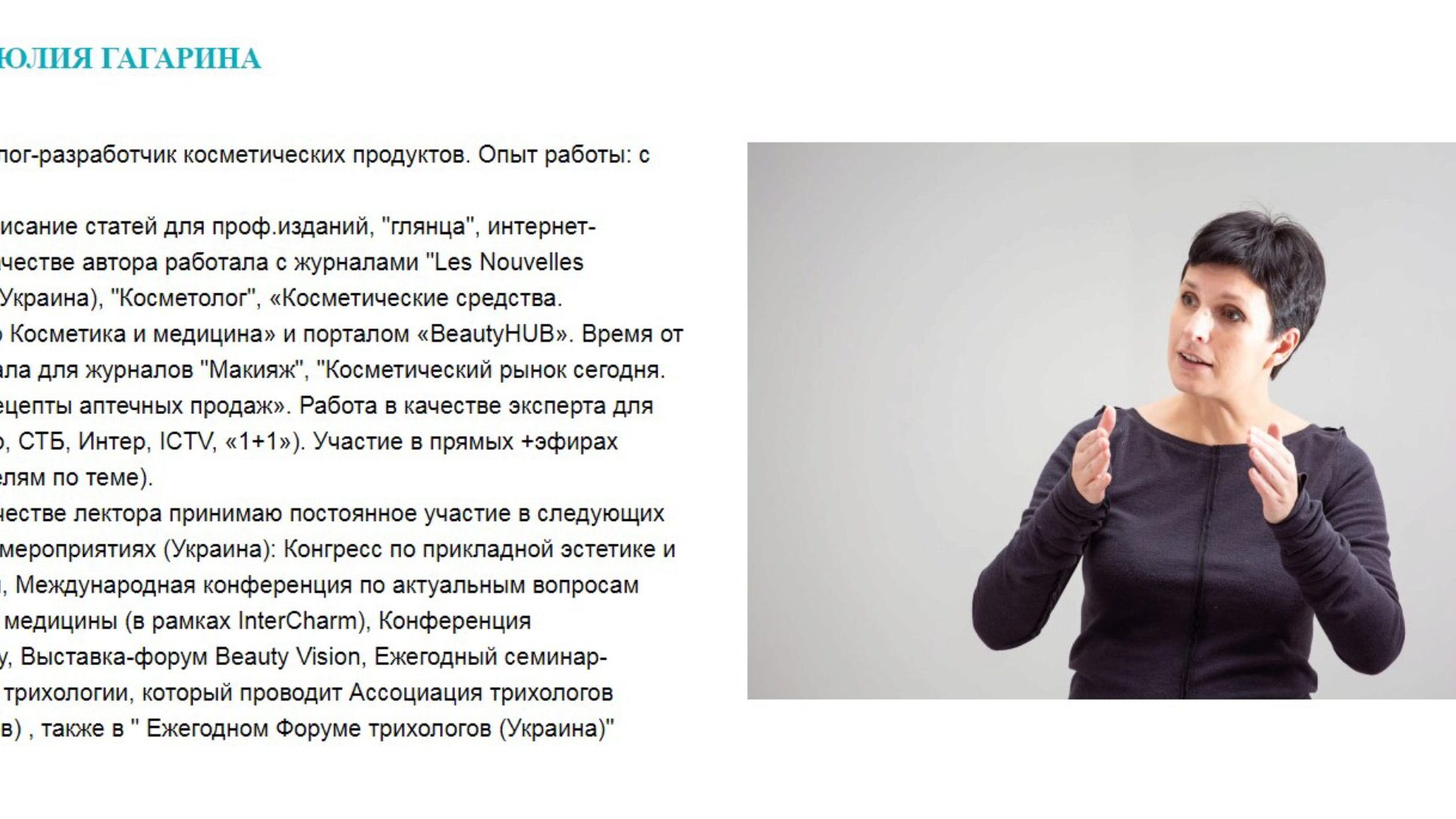 Вебинар проводит известный лектор, спикер локальных и международных конференций, разработчик косметики и химик-технолог Юлия Гагарина.