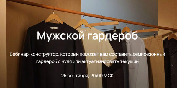 «Мужской гардероб» — вебинар-конструктор, который поможет вам составить демисезонный гардероб с нуля или актуализировать текущий.