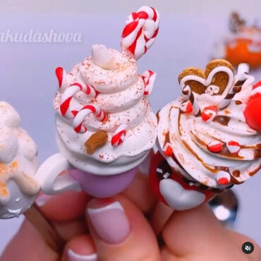 •Украшения: молотая корица, макаронс, маршмеллоу, пряники, палочки корицы, мандариновая кожурка, трубочки, леденцы