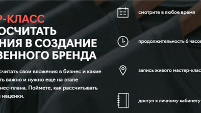 На мастер-классе вы разберетесь, сколько денег потребуется для создания собственного бренда. Заранее поймете, на чем можно сэкономить, а на чем никак. Эти базовые знания к подготовке к запуску станут вашей подушкой безопасности - все необходимые вводные и расчеты за 6 часов!