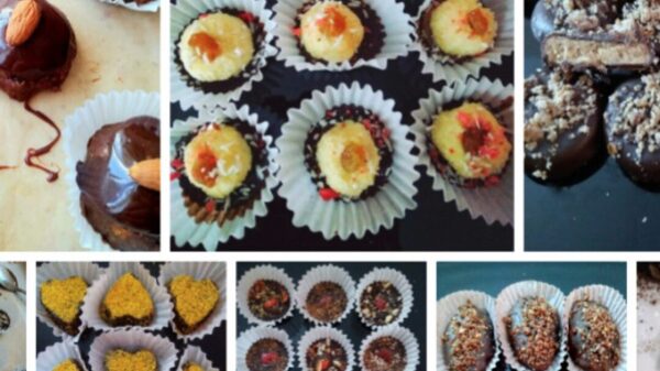 - Пряные конфеты, двухслойные с вишней, инжиром, апельсином и корицей в шоколале