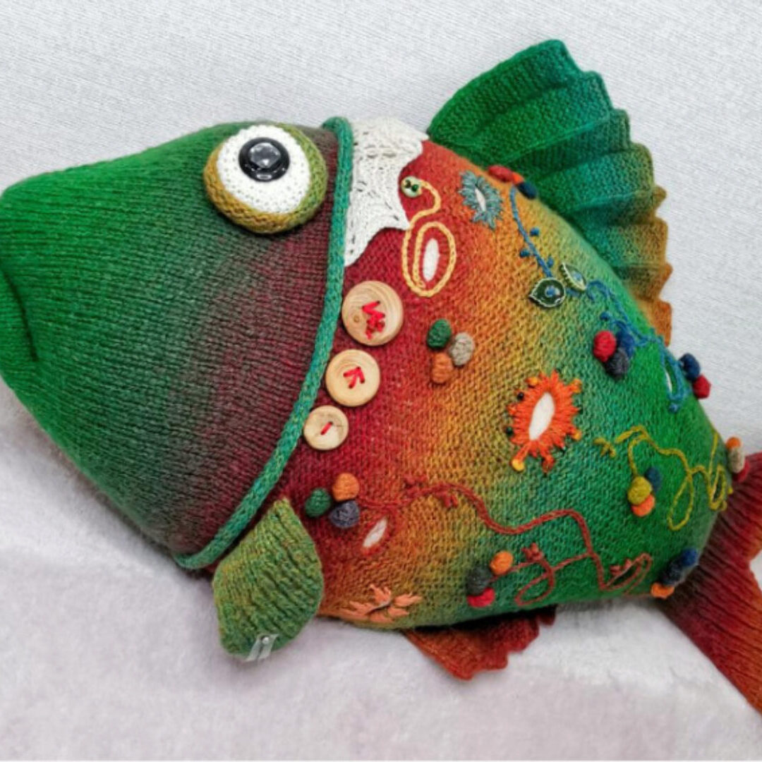 Курс Рыба Crazy Color Fish, автор Юлия Маленкова. Очень подробный мастер-класс по вязанию крупной рыбы спицами.