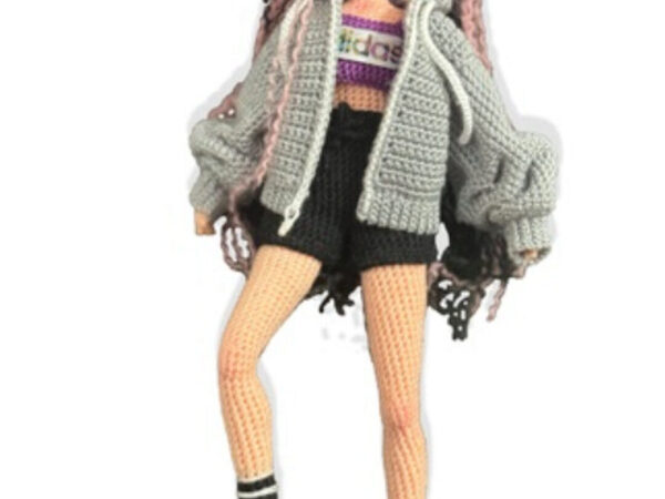 При вязании указанными материалами у Вас получится кукла около 24 см