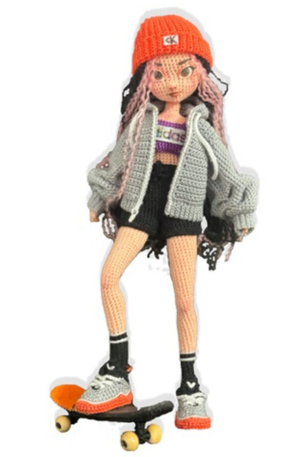 Кукла изготавливается на проволочном каркасе, что позволяет придавать кукле различные позы