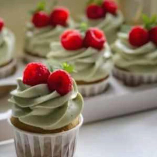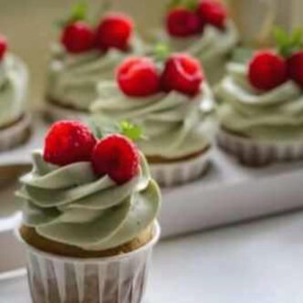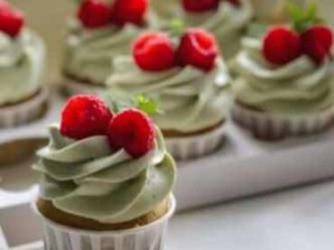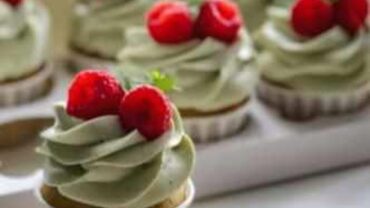 - Капкейки Фисташка с малиновым конфи и фисташковым кремом