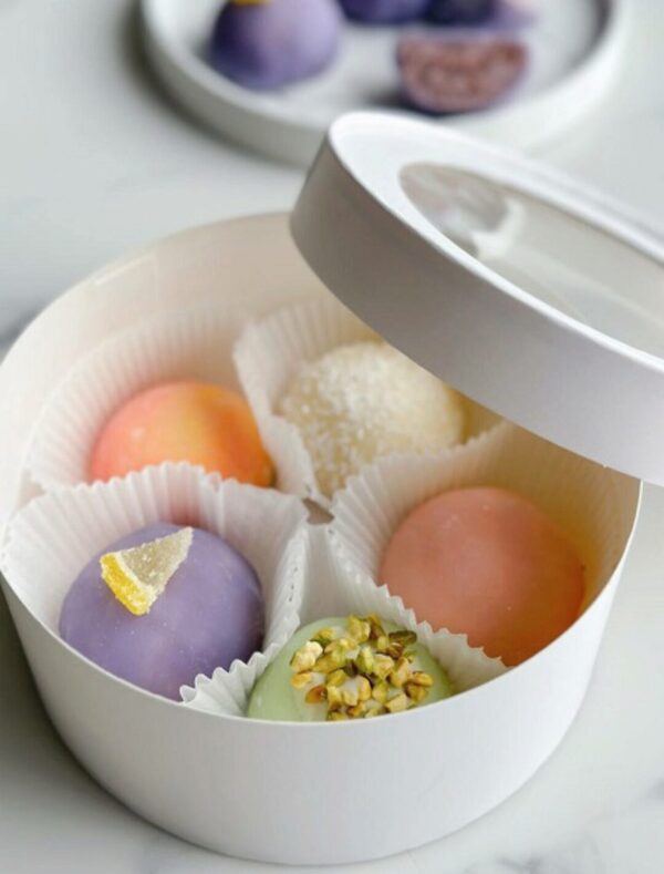 Сборник начинок моти «Коллекция №3» (все начинки рассчитаны под безопасную заморозку): Сникерс Фисташка-Пармезан Рафаэлло Имбирный эль Шоколад-Киви-Банан Апероль Подробная технологическая карта с фото в формате PDF.