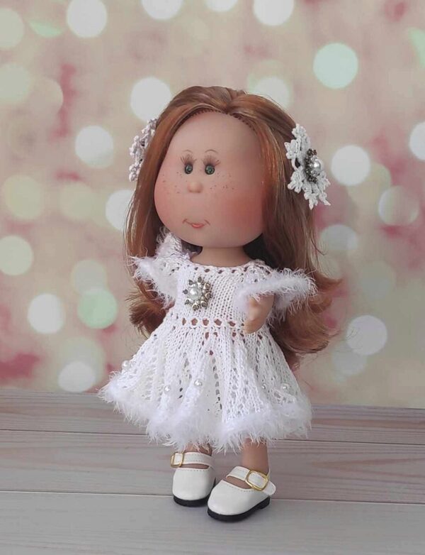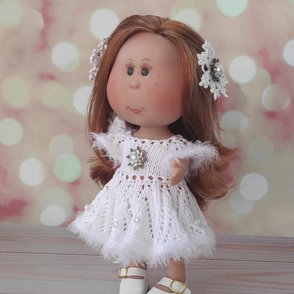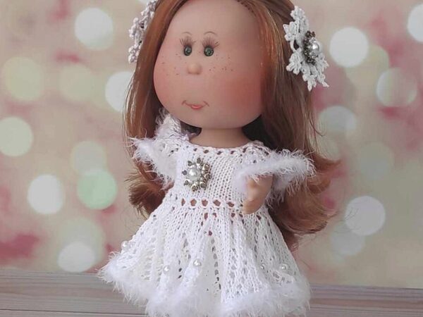 Распашное платьице с застежкой на пуговицы для куколок ростом 21-23 см (Паола Рейна Мини, Берхуан Мини, Крузелингс, также подходит для кукол Блайз). Платье вяжется на двух спицах №1.5-1.7 Плотность вязания (по лицевой глади): Образец 20п(+2 кр) х 20 рядов = 5.8 х 4.3 см Платье на фото связано из