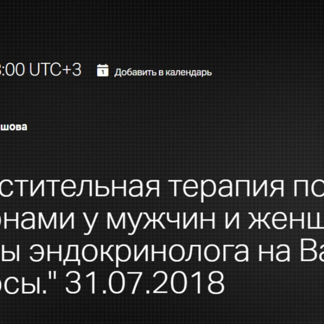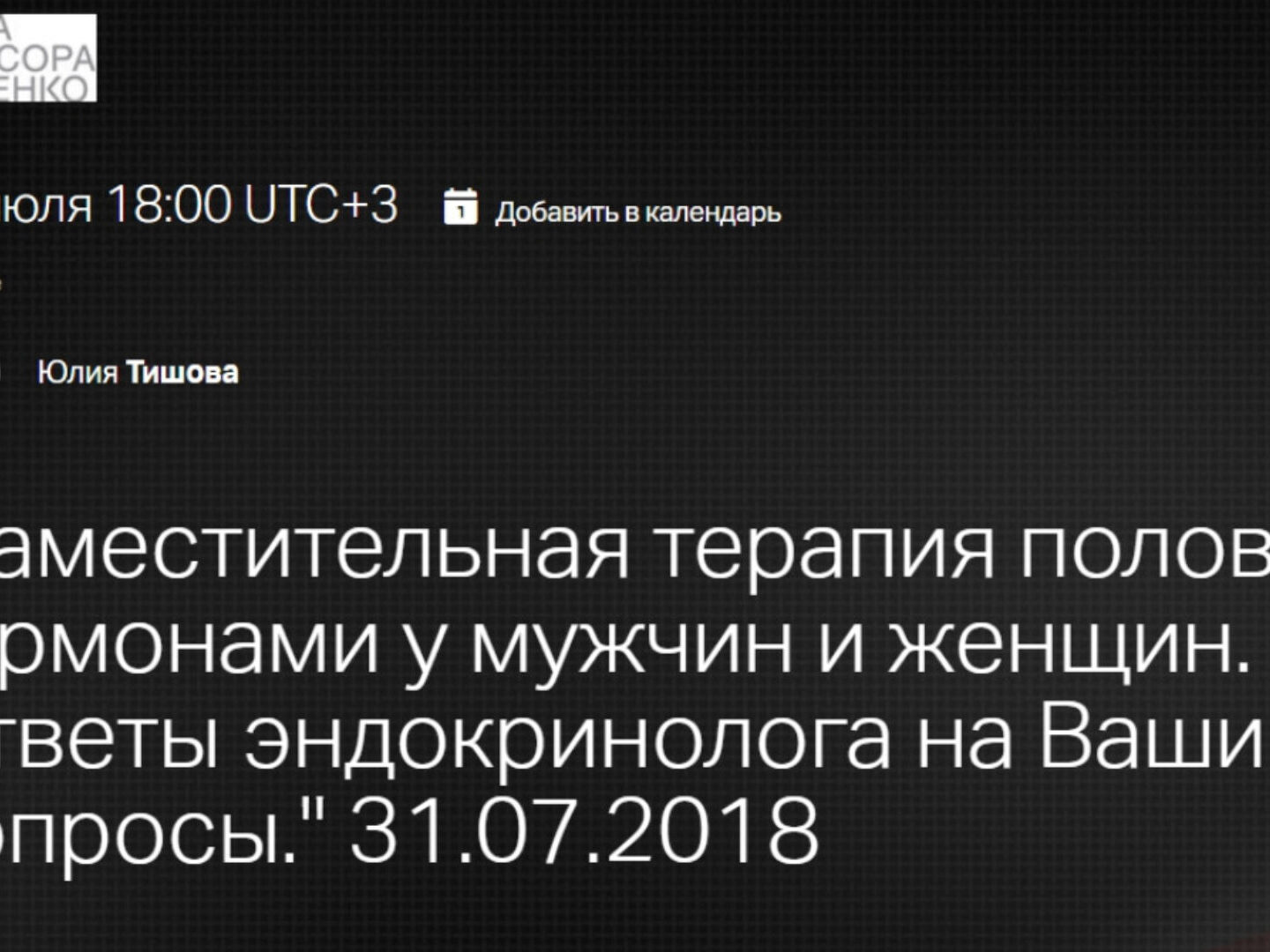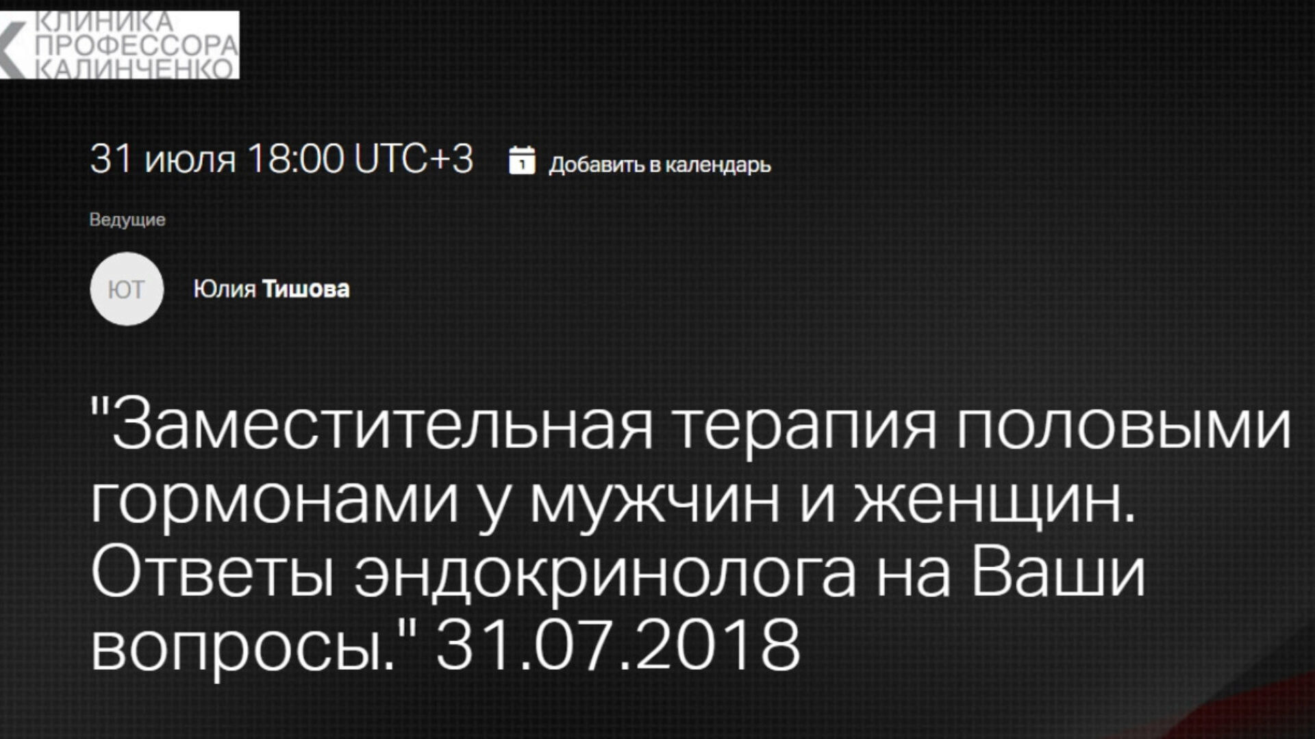 Юлия Тишова «Заместительная терапия половыми гормонами у мужчин и женщин. Эндокринолог отвечает на вопросы» — Клиника Калинченко слив скачать