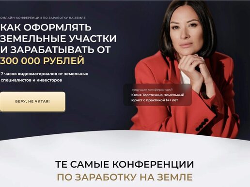 Курс Как оформлять земельные участки, автор Юлия Толстихина.