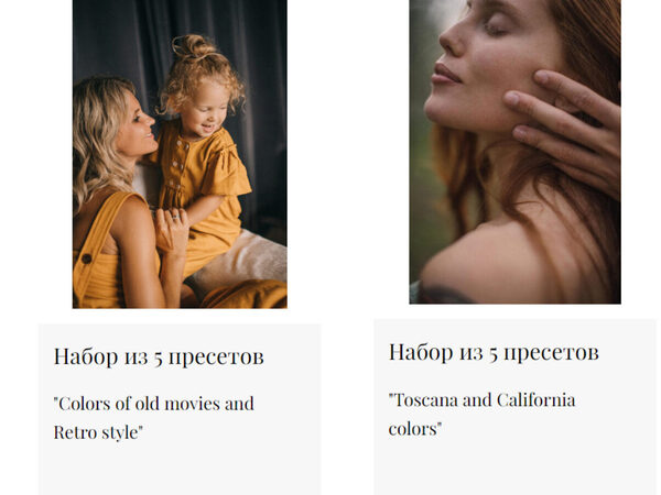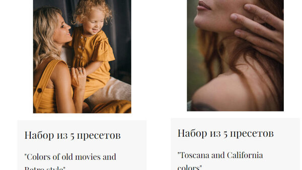 Курс Все и сразу! Два набора пресетов, автор Юлия Трегубова. Все и сразу! Два набора пресетов. Пак #1 Colors of old movies and Retro style (5 пресетов) + #2 «Toscana and California colors» (5 пресетов)