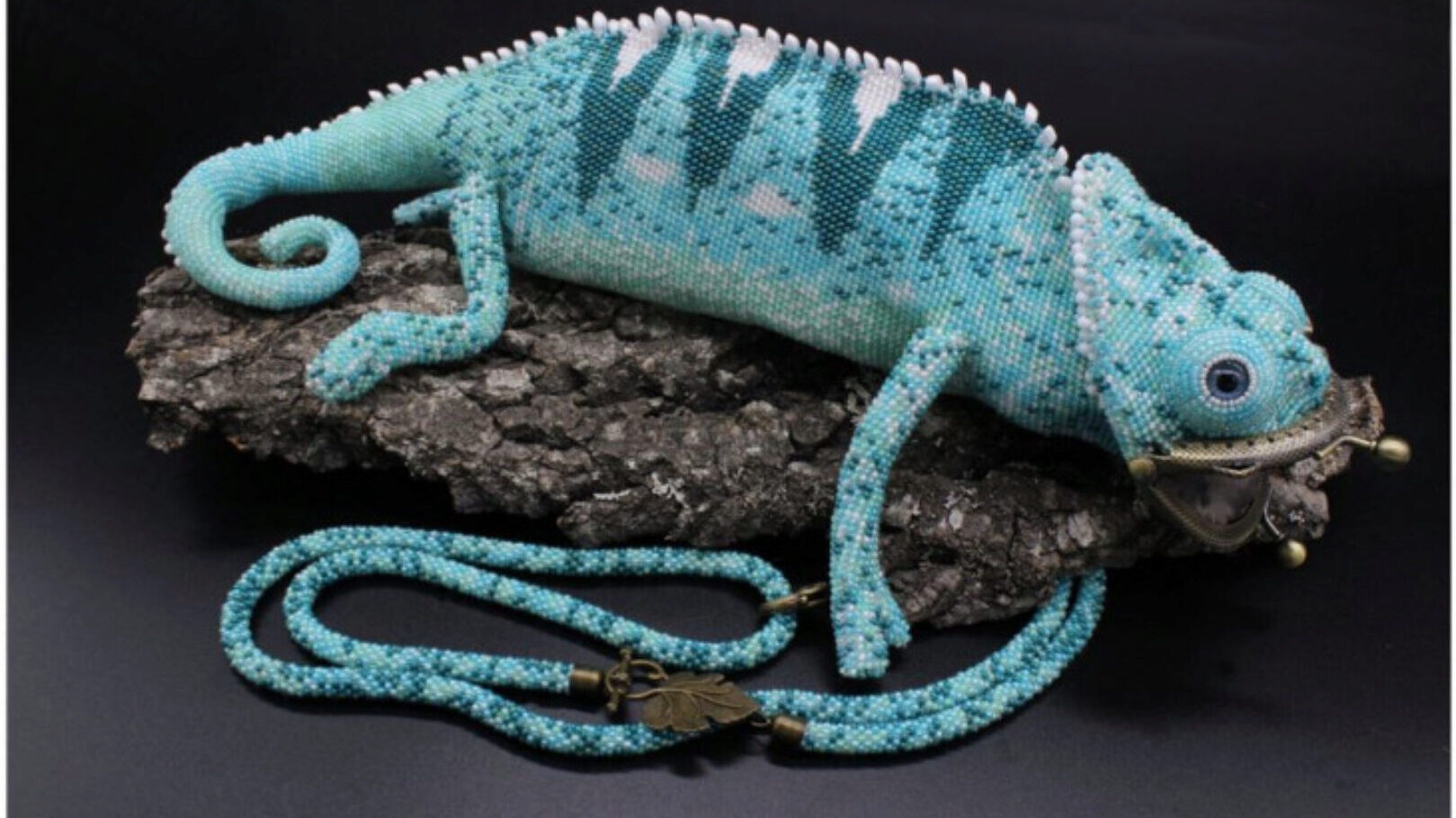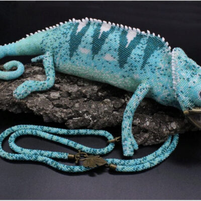 Почему я так люблю все чешуйчатое и хладнокровное? Во-первых, это красиво. Бисер, пайетки и фантазийной формы бусины отлично передают фактуру шкурки. «Как живое» всегда привлекает внимание и демонстрирует возможности мастера. Фотографии с этими работами неизменно вирусятся и сами продвигают ваше