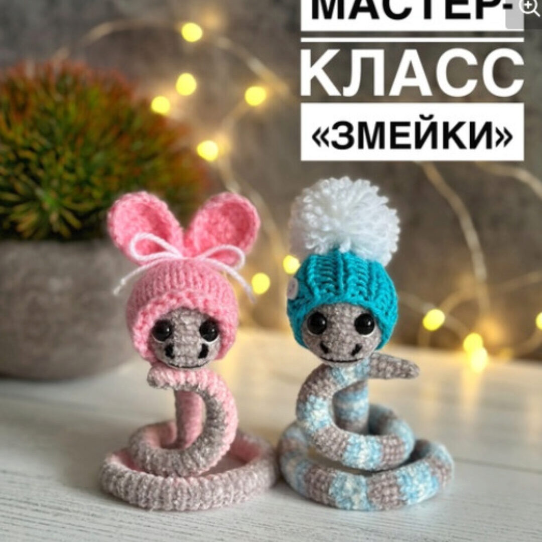 Мастер-класс в формате PDF. 27 страниц Фото всех этапов (видео нет) Длина змеи примерно 26-30см (в зависимости от плотности вязания) Проволочный каркас В мк входят: описание вязания самой змеи и 4 вида головных убора на нее.