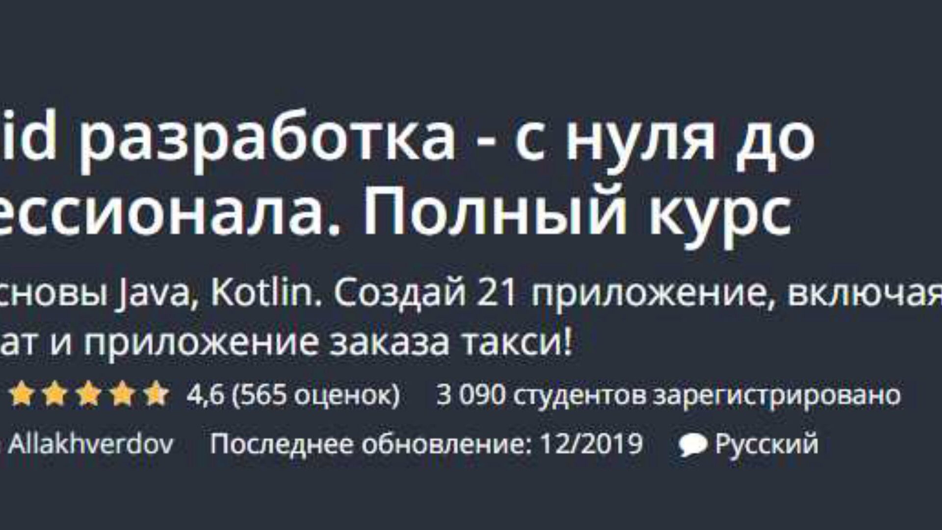 Юрий Аллахвердов «Android разработка с нуля до профессионала. Java, Kotlin» — Udemy слив скачать