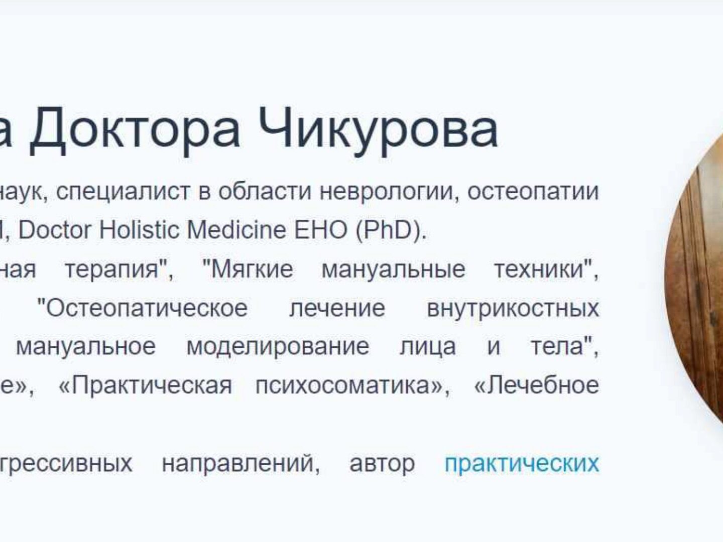 Мягкие мануальные техники ”Коррекция опорно-двигательной и висцеральной систем” Чикуров Юрий Валентинович Семинар посвящен коррекции позвоночника, таза и конечностей, а также висцеральных структур. Формат семинара выглядит следующим образом: Что делать с болями в пояснице, шее, позвоночнике и