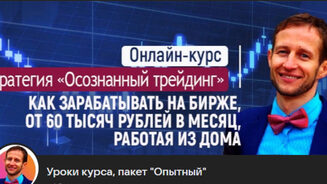 Здесь, благодаря моей авторской методике «Осознанный трейдер» ты пошагово получишь навык заработка на бирже от 60 тысяч рублей в месяц и сможешь оставить работу по найму.