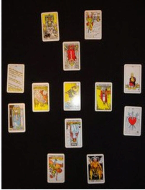 Расширенная версия известного нашим ученикам расклада «Большой Мальтийский Крест» (в простонародье «крест с хвостиками»).