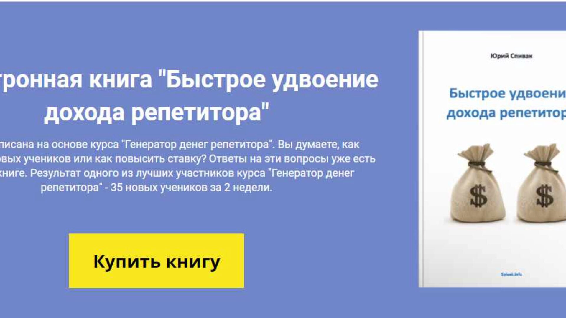 Курс Быстрое удвоение дохода репетитора, автор Юрий Спивак. Электронная книга «Быстрое удвоение дохода репетитора»