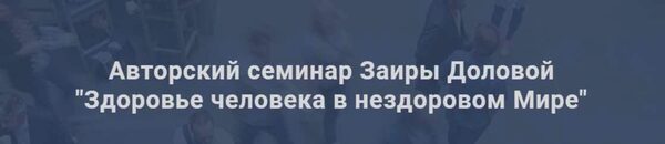 Меня зовут Заира Долова. На моем большом семинаре будут раскрыты секреты здоровья с очень неожиданной для Вас стороны. Было бы неинтересно, если бы я просто пришла и рассказала Вам всё то, что Вы и так можете прочитать в интернете или в других книгах.
