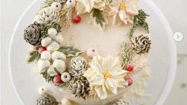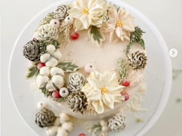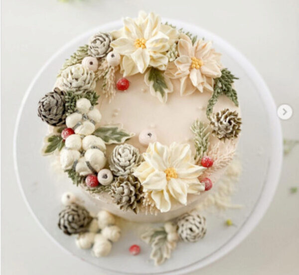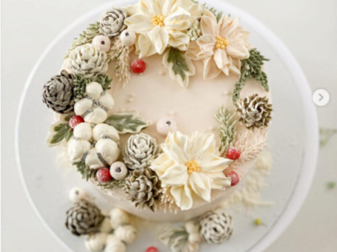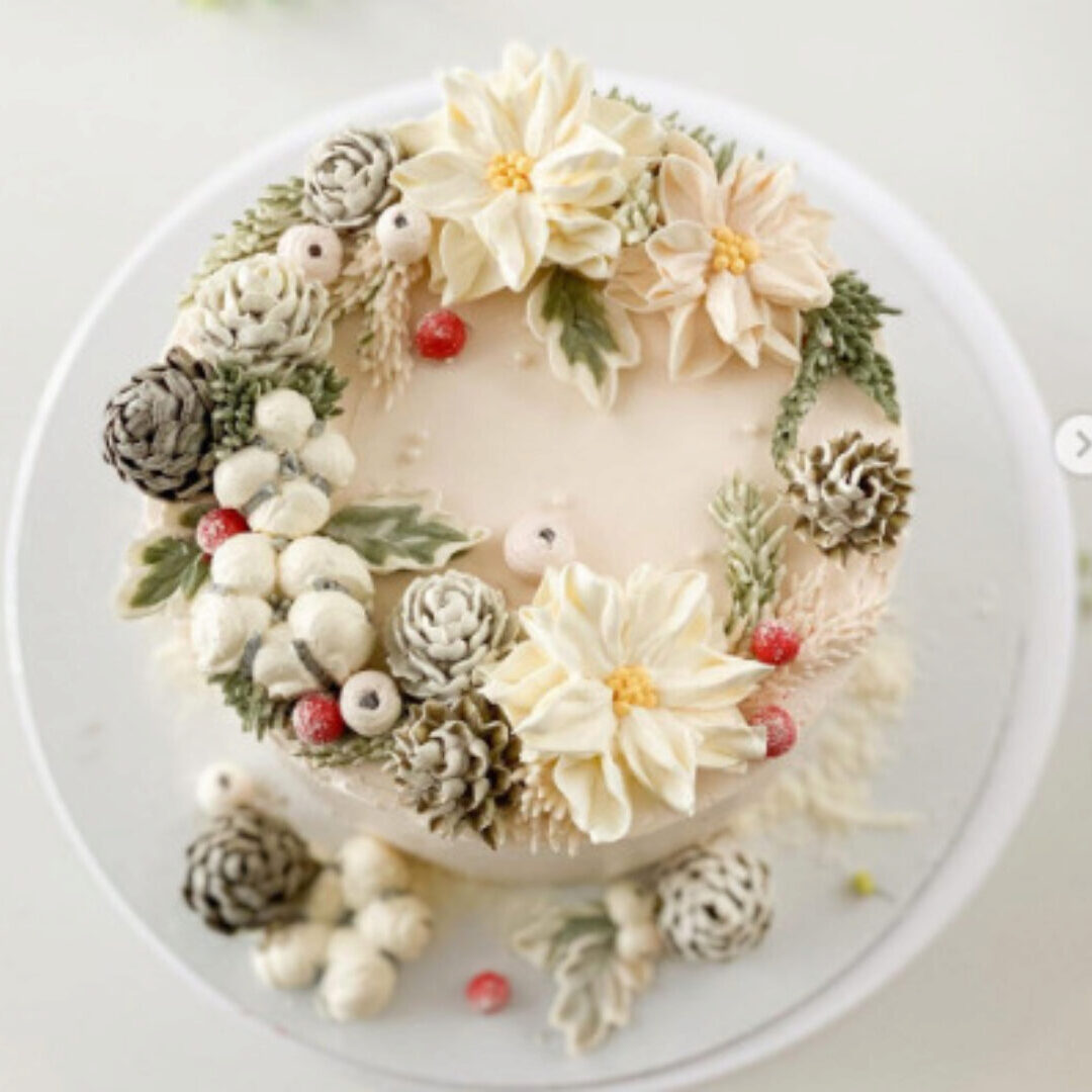 научитесь создавать из крема : шишки, хлопок, ягоды, остролист, пуансеттию, хризантемы, хвою