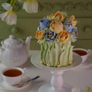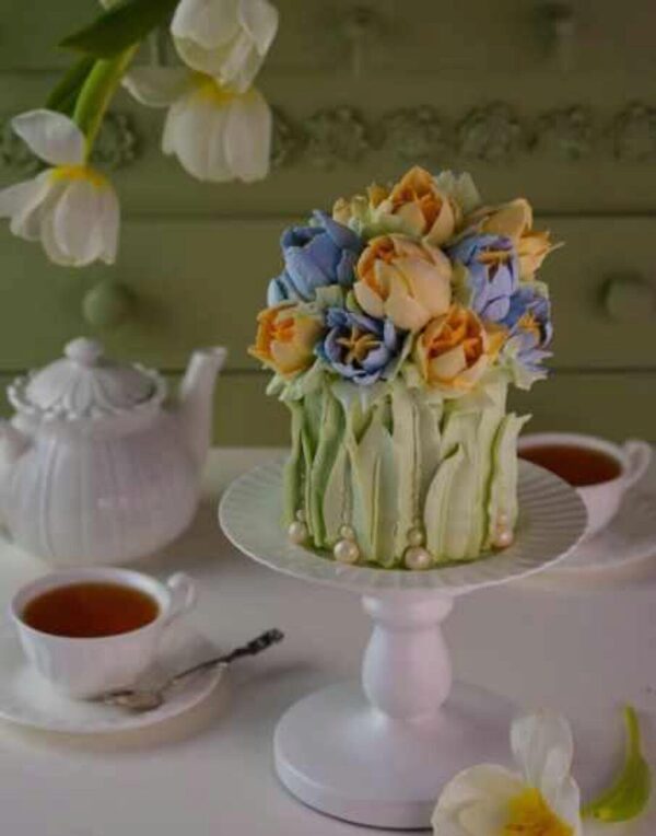 - Торт «Крокусы». Мятный зефир с шоколадной крошкой, шоколадный влажный бисквит и зефирные крокусы. Для приготовления этого торта потребуется только одна насадка для цветов. Создание крокусов подойдет новичкам и тем, у кого не получается работать насадкой для тюльпанов.
