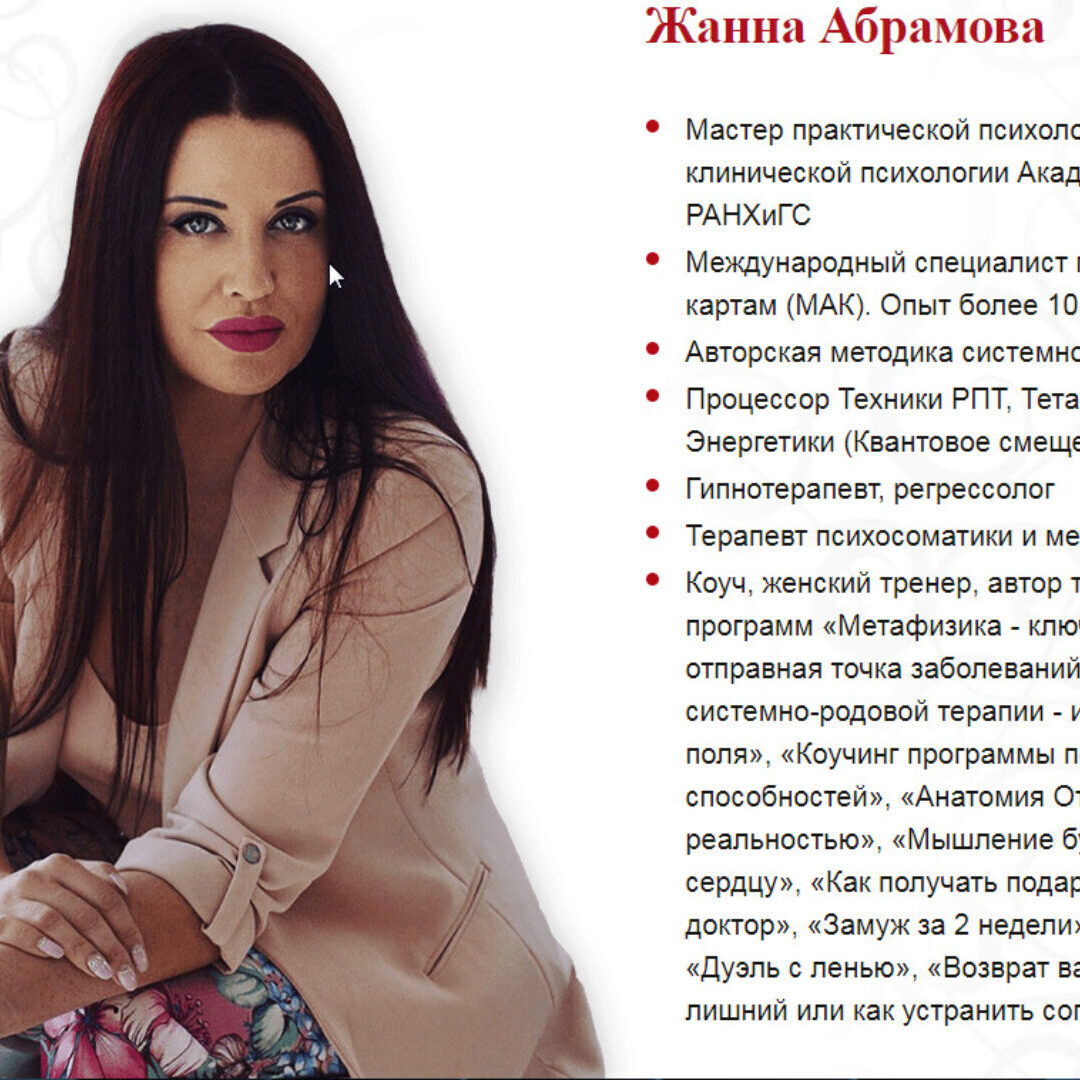 Купить другие курсы и тренинги от Жанны Абрамовой