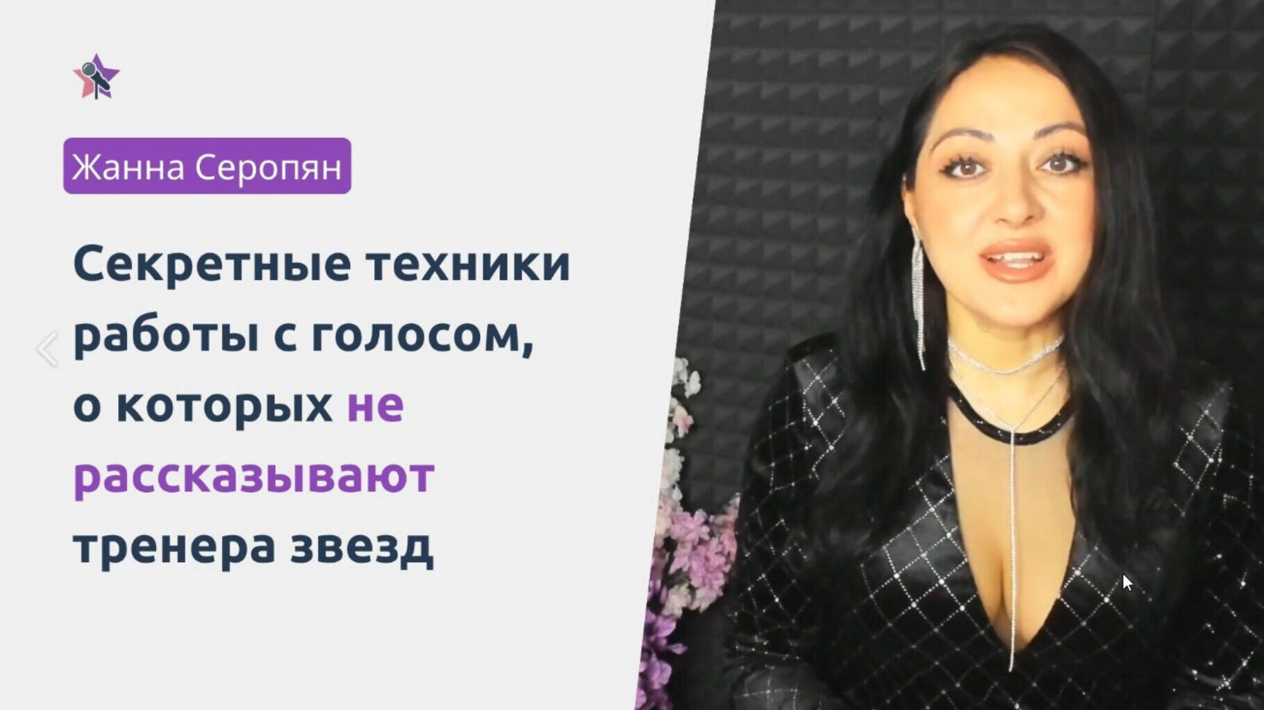 Жанна Серопян - Профессиональная певица и тренер по вокалу. - Преподает вокал более 10 лет - в разных школах - Выпустила множество песен на российских, европейских и западных лейблах - Закончила Гнесинское училище (ГМУЭДИ) - Получила высшее музыкальное образование в Тамбовском государственном