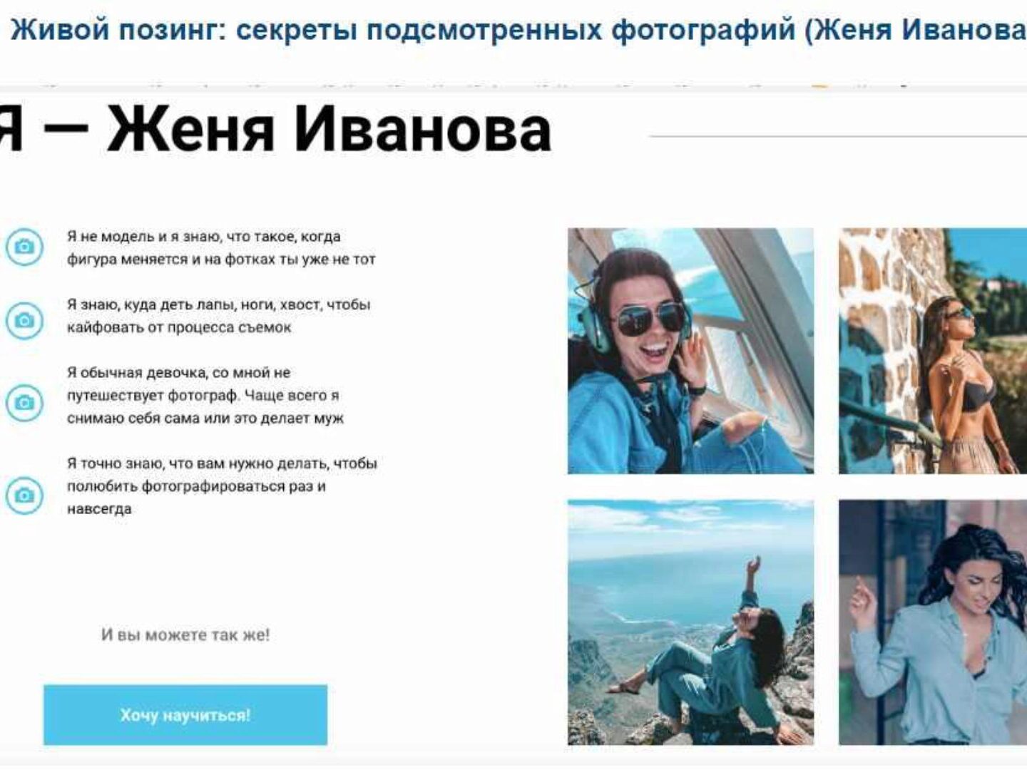 Отзывы о курсе «Живой позинг: секреты подсмотренных фотографий» от Жени Ивановой
