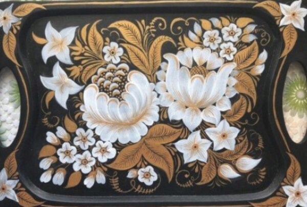 Изучала производство жостовских подносов и разработала программу для адаптации приемов жостово под водорастворимые краски: темперные, акриловые для широкого круга учащихся.