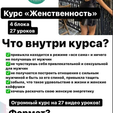 Если в отношениях ты часто попадаешь в слабую позицию, мужчины не хотят за тобой ухаживать и не видят твою ценность, в отношения с тобой не вкладываются. к тебе относятся без восхищения и обожания - тебе подойдет курс «Женская значимость». Курс состоит из 2-х ступеней 1 ступень - базовый уровень 7